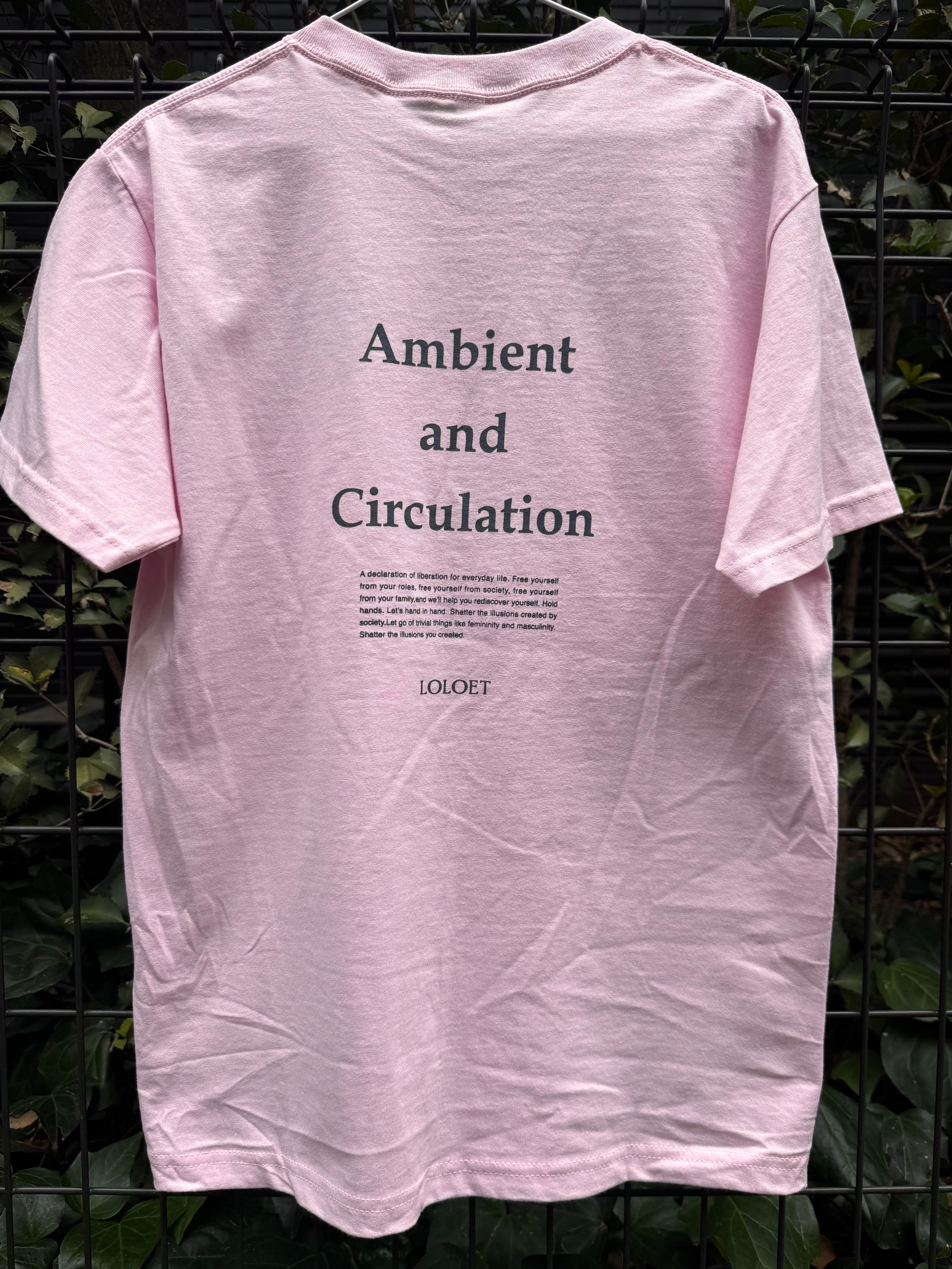 This T-shirt features an embroidered LOLOET illustration logo. The back print features LOLOET's philosophy and the lyrics of their song "La fête (The Party)."